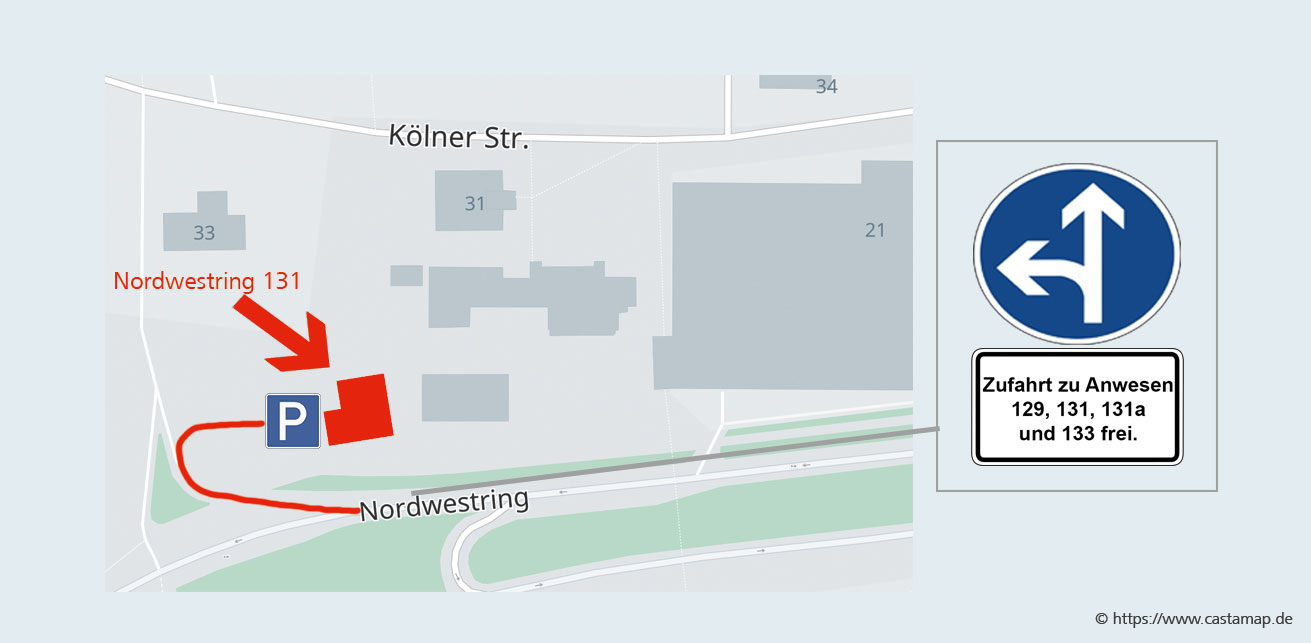 Wir liegen etwas versteckt zwischen Nordwestring und Kölner Straße und sind daher bei der ersten Anfahrt oft nicht auf Anhieb zu finden.
